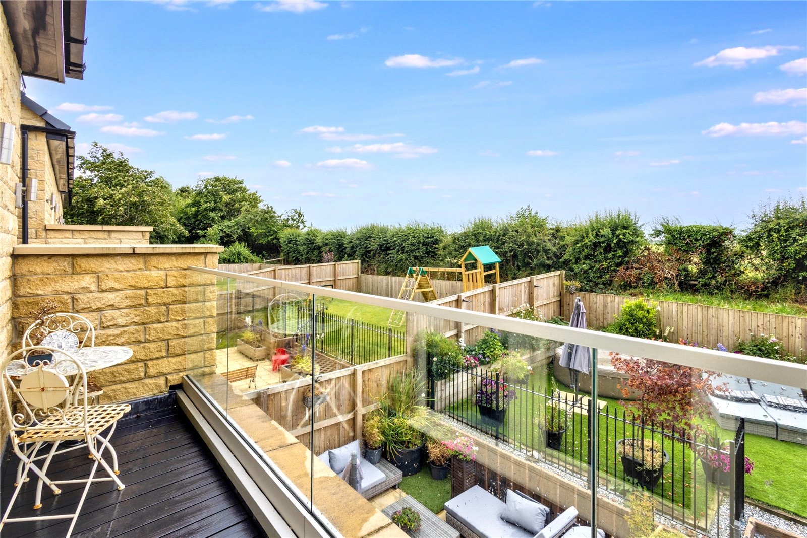 Unlike other homes in the area, this residence is not surrounded by neighbouring gardens, giving it a truly detached feel. To the south, the balcony opens up to breathtaking views across 30 acres of picturesque, farmed fields — a stunning backdrop for daily sunsets that bathe the landscape in golden light.